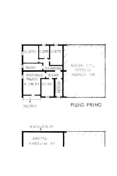 - Appartamento al primo piano: ampio soggiorno, cucina abitabile, tre camere da letto, bagno e ampia soffitta.